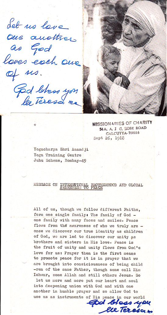 MESSAGE FROM MOTHER TERESA ON INTERNATIONALBROTHERHOOD CONGRESS