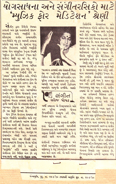 "Review of seminar on MUSIC FOR MEDITATION in Gujarati Janmabhoomi newspaper "